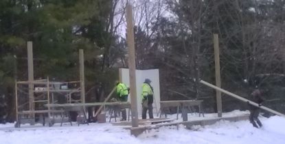 snow. But the crew started putting up the structure.